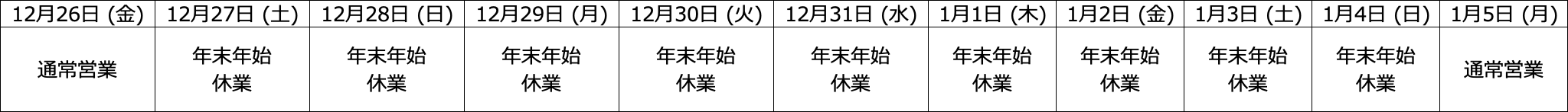 誠に勝手ながら、年末年始の 12月27日(土)〜 1月4日(日)の期間は休業とさせていただきます。